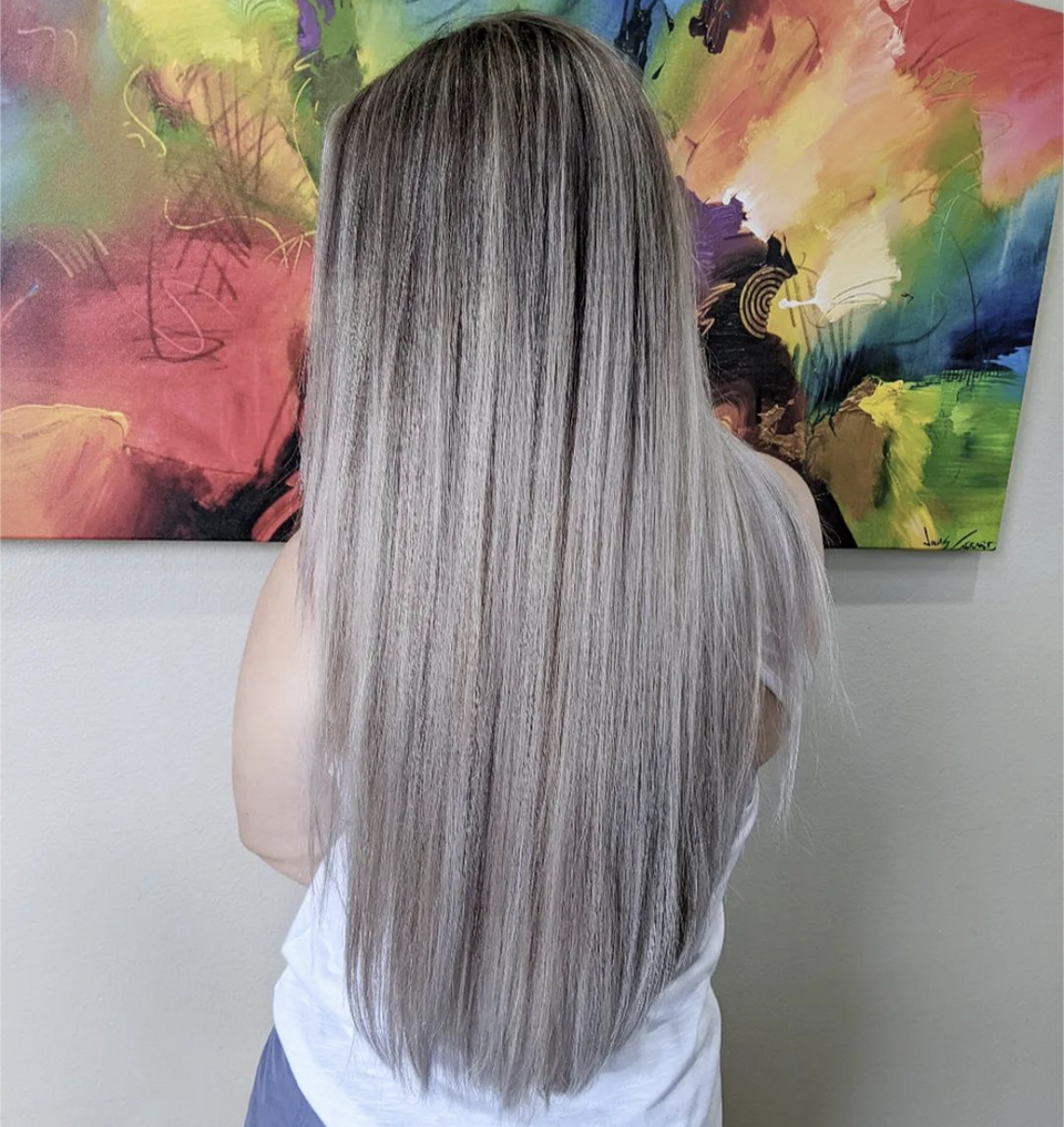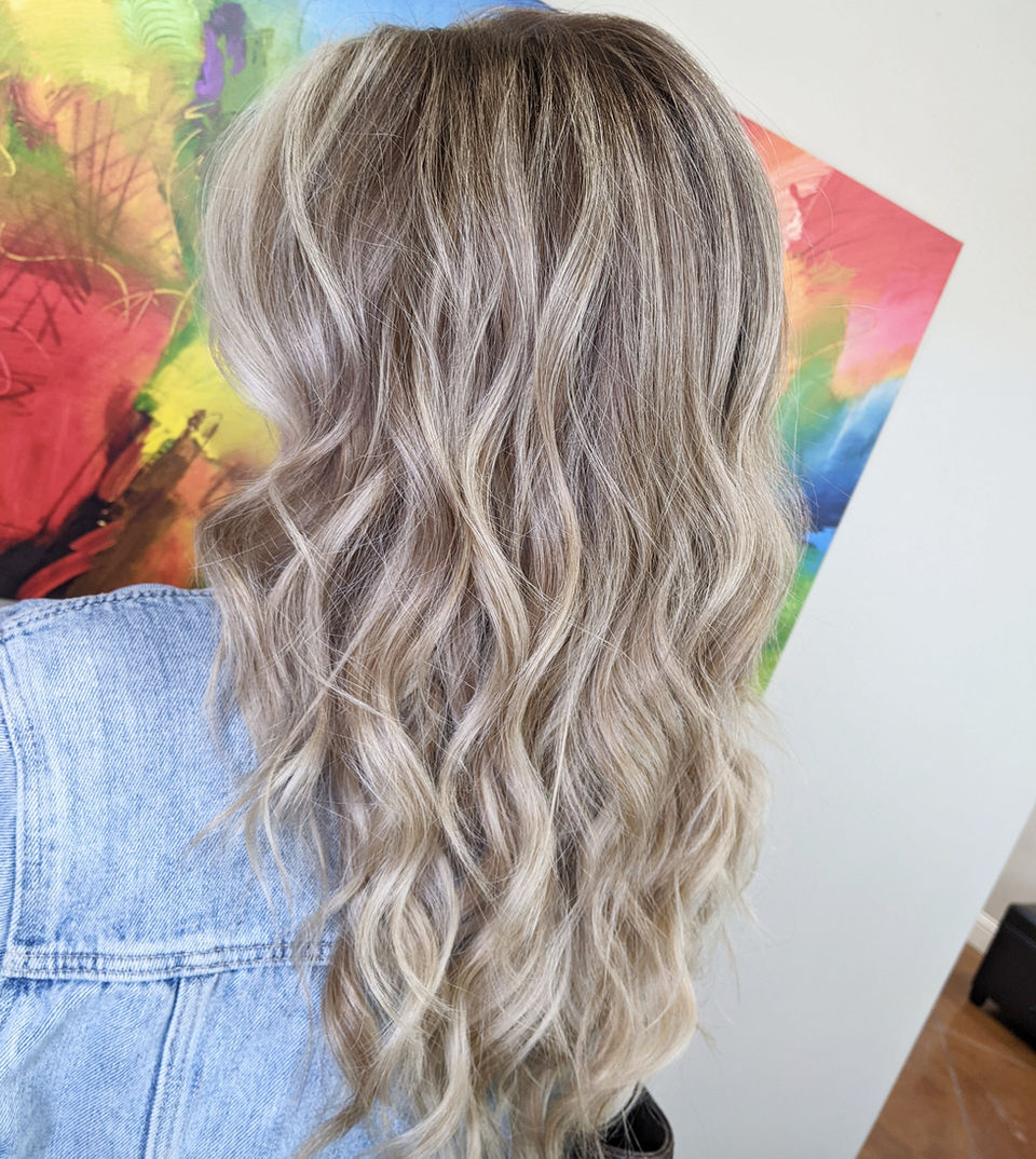 Balayage is a blonding technique used to create a natural, blended highlighted look that gives an easy grow-out. It can be used to create a heavy, full blonde appearance or for a natural and dimensional look. Most popularly used with a bright pop of blonde around the face called the Money Piece, balayaging is perfect for those who love to be blonde but don't want the maintenance of traditional foils. This specialty service has a maintenance schedule anywhere from 2 to 6 months or more between appointments and can take up to 4 hours or more to complete.